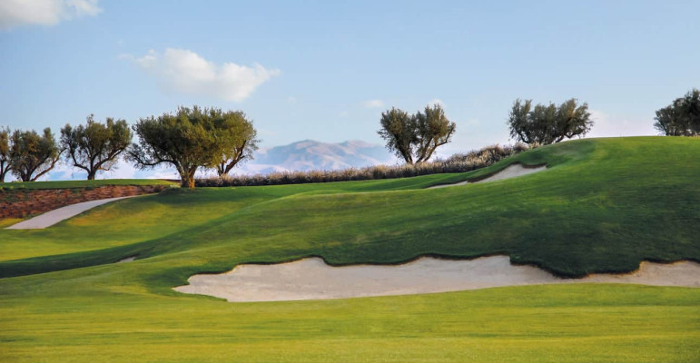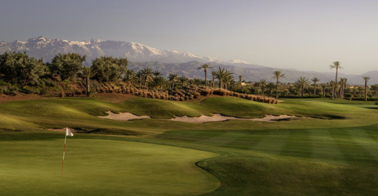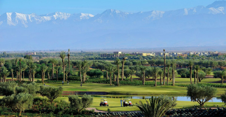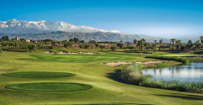 The Royal Palm Golf Club is an immaculately landscaped course with gentle rolling greens set amid mature planting and trees. The course offers stunning scenery with the foothills of the snowy Atlas Mountains in the background. The remarkable 18-hole golf course was designed by Cabell Robinson and covers 75 hectares of exquisitely landscaped ground.