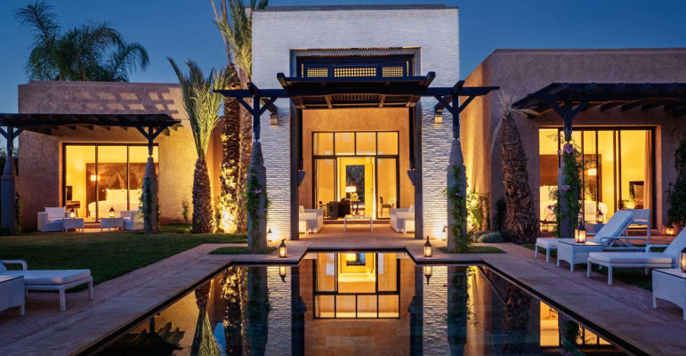 Backed by the snowy peaks of the Atlas Mountains and wrapped in landscaped water gardens, Fairmont Marrakech Royal Palm is a luxury Marrakech hotel welcoming business and leisure travelers alike. A sublime and leafy escape from the bustle of the city, it offers 134 exquisite guest rooms, suites and villas, eight outstanding restaurants and bars, and one of the best golf courses in Marrakech. Just 20 minutes from Marrakech Menara Airport, our elegant Moroccan-inspired hideaway also offers indoor and outdoor pools, soothing treatments at Le Spa, and myriad sporting activities.