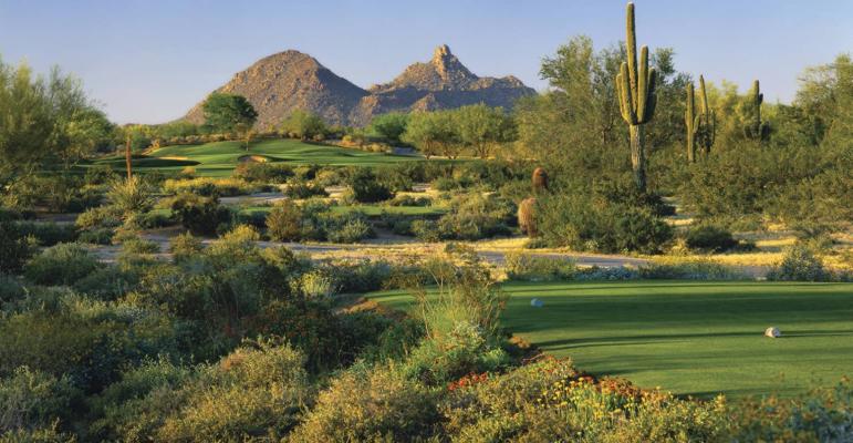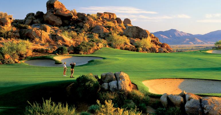 With saguaro cacti fronting mountain peaks, the scenery on this 7,009-yard, par-71 course is extremely compelling, and the five sets of tees mean that the course and scenery can be enjoyed by all.