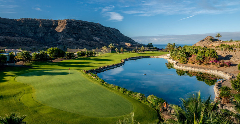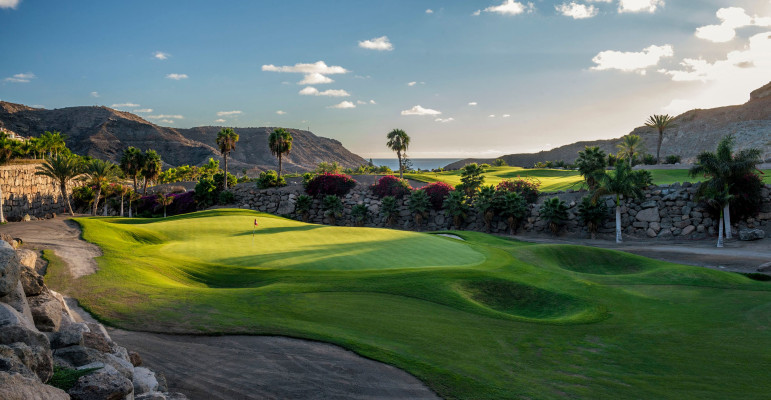 a challenging 18 hole championship golf course set on the beautiful south coast of Gran Canaria, Spain. Lopesan Meloneras Golf combines views of the lovely Canarian mountains with coastal golf at its best, using the stunning Atlantic Ocean and the rocky coastline as its backdrop. Start your round with a front nine lined with hundreds of palm trees, shadowed by the volcanic mountains at the center of the island. Make the turn to discover a back nine bordering the ocean, providing more than a few quality picture moments.