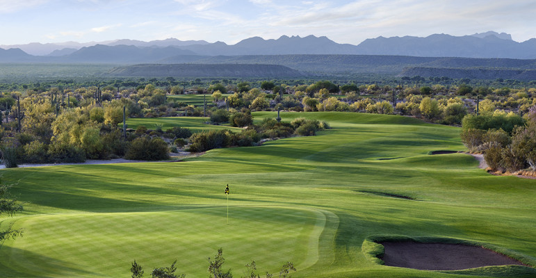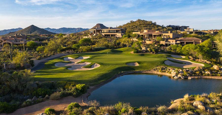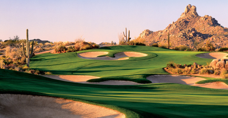Troon North Golf Club stands as a hallmark of the Scottsdale desert golf experience with two 18-hole courses stretching through the natural ravines and foothills in the shadows of Pinnacle Peak. Giant granite boulders lie strewn across the rugged landscape of Arizona’s Sonoran Desert, where Troon North Golf Club combines iconic golf with the visual sensation of desert landscape, providing a standard unmatched in the American Southwest.